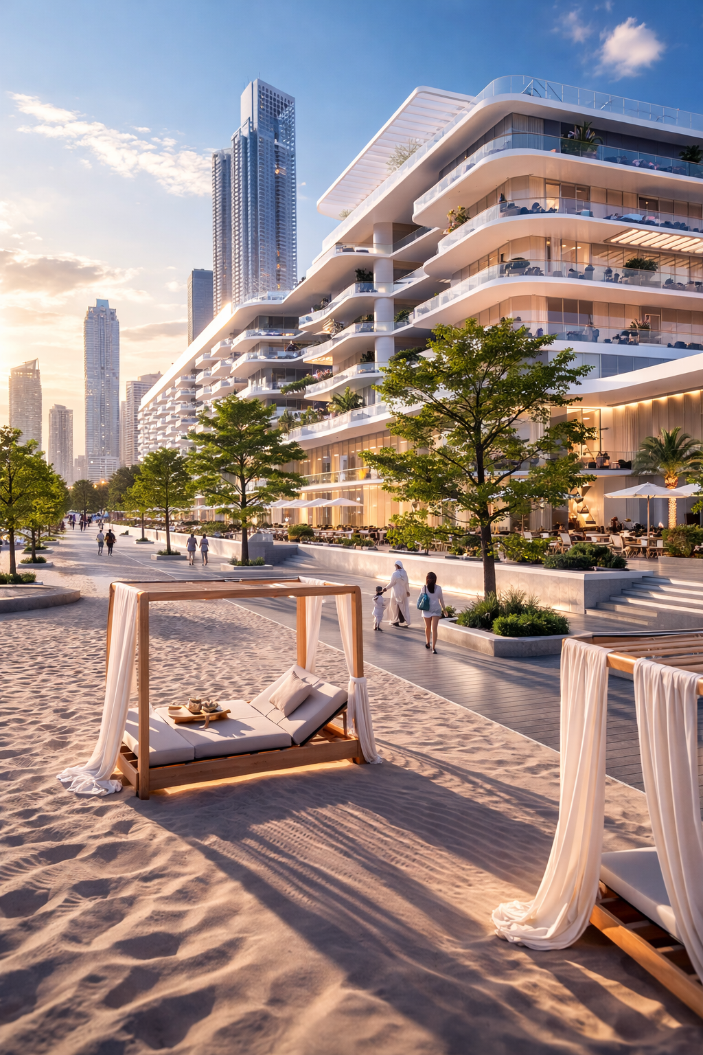 Positioned between the Arabian Gulf and Dubai’s dynamic skyline, Dubai Harbour Residences offers direct access to marinas, beaches, and waterfront promenades. Residents enjoy a seamless blend of seaside tranquility and urban sophistication within one of the city’s most prestigious coastal districts.